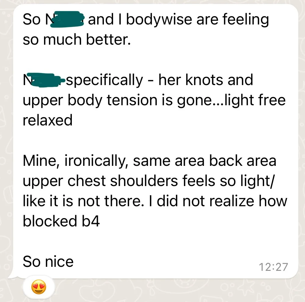 By working with the fascia to release restrictions and tension, and using biofield therapy to restore energetic flow and harmony, I aim to help you experience deeper healing, relaxation, and emotional release. My therapies and products are designed to nurture your well-being, helping you feel lighter, more connected, and fully present in your body—empowering you to move through life with greater ease and joy.